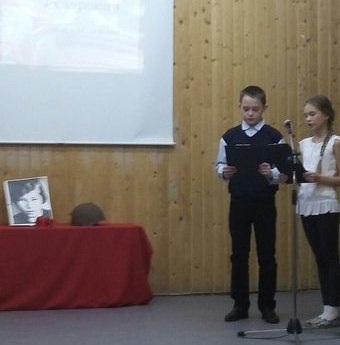 На первый урок в актовом зале школы собрались учащиеся 8-11 класса на классный час «Священной памяти хранитель». Во вступительном слове руководитель школьного музея Боевой Славы Е.П. Гришкалаускене рассказала о ценных и интересных материалах и экспонатах музея, привела эпизоды из воспоминаний о «нашей Марийке».