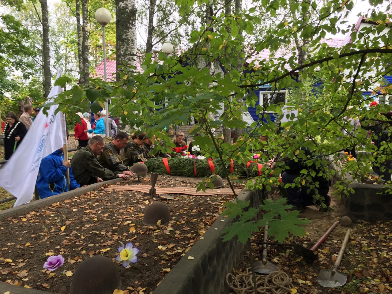 Центральным событием стало захоронение останков 17 бойцов Красной армии, поднятых поисковиками во время летней вахты 2019 года недалеко от деревни Киндасово. Собравшихся приветствовал ветеран Великой Отечественной войны Макашев Н.Ф., один из руководителей поискового движения Осиев А.Н. В этнокультурном центре п. Пряжа оформлена небольшая выставка «Памяти 313 стрелковой дивизии…», первыми посетителями которой стали члены поискового отряда «Медведь».