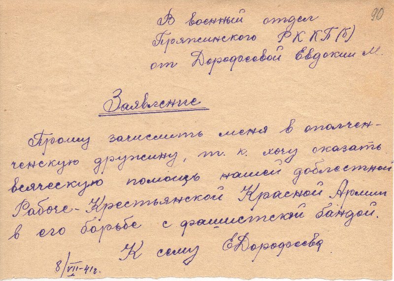 Требует зачисления в «ополченскую дружину» и Дорофеева Дуся.