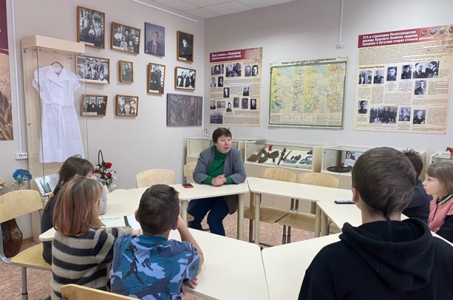Руководитель музея Боевой славы Т.П. Сеппянен провела экскурсию для ребят, посешаюших отделение дневного пребывания центра помощи детям "Солнечный".