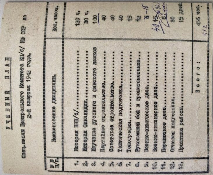 Кадры для подпольной работы на временно занятых врагом территориях готовила Спецшкола ЦК КП(б) КФССР, действовавшая в 1941-1944 гг. Уже на занятиях в школе курсанты готовились к действиям в экстремальных условиях. В программе были теоретические предметы: история ВКП(б), военная география, экономика, политический строй, вооруженные силы, политические партии Финляндии, военная топография. Но особое внимание уделялось подготовке к диверсионным и агентурным действиям, изучению всех видов оружия и стрельбе из них, физической и санитарной подготовке, умению использовать и уничтожать все виды связи, военно-инженерному и военно-химическому делу. Учили способам выживания в экстремальных условиях: ориентироваться на местности, скрытно окапываться, маскироваться, беззвучно подбираться и снимать часовых, метать финский нож, ползать по-пластунски, учили приемам рукопашного боя и многому другому, что позволяло выполнить задание и уцелеть самому.