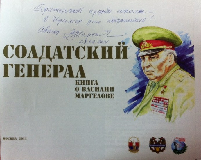 Встреча в школе началась с показа привезенных экспонатов портретной галереи «Долг и память», где представлены портреты героев РФ: подполковника ВДВ Михаила Евтюхина, снайпера Василия Денисова, полковника ВДВ Алексея Баландина, сержанта ВДВ Леонида Палачева, майора Сергея Молодова, командира дивизии ВДВ Владимира Романова, легендарного командующего войсками ВДВ Василия Маргелова и других. О нелегкой фронтовой судьбе В. Маргелова, трех войнах и восьми ранениях, о непререкаемом авторитете среди десантников рассказал сын комдива Александр Васильевич Маргелов. Его отец был удостоен звания Героя Советского Союза по окончании операции по обезвреживанию 32 тысяч гитлеровских солдат, входивших в состав дивизии СС. Больше трех суток советская комендатура оформляла военнопленных после этой операции. Василий Маргелов освобождал в 1944 — начале 1945 годов от фашистских оккупантов население Западной Белоруссии и Западной Украины. Он вспоминал в свое время, как восторженно, со слезами на глазах, с цветами и хлебом-солью встречали местные жители наших солдат, словно чудесных и долгожданных избавителей и героев.