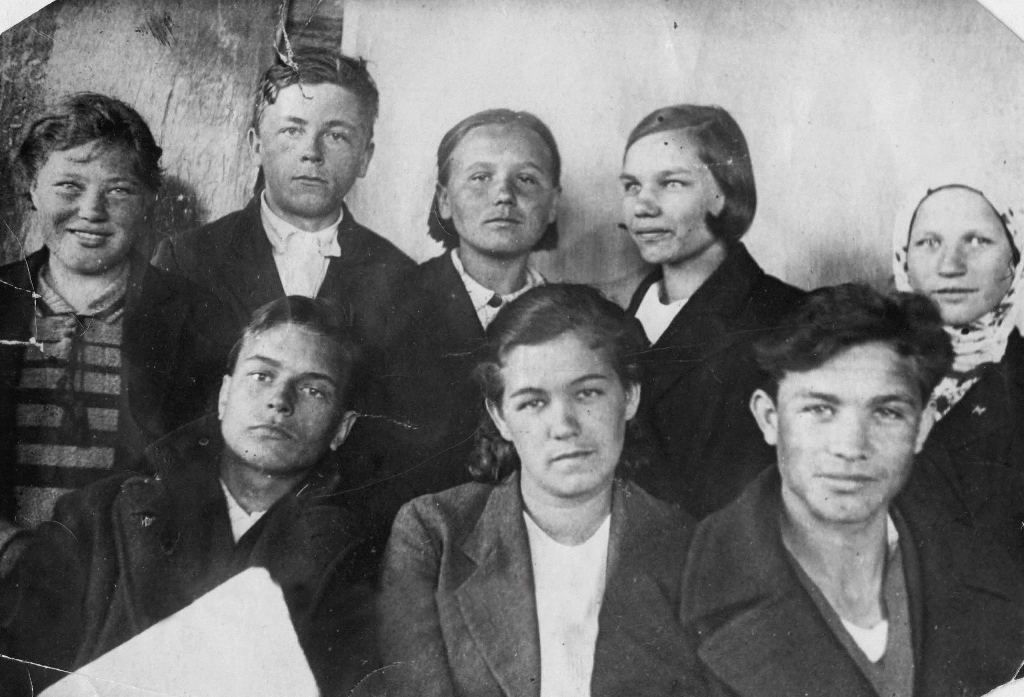 А это любительское фото, сделанное в школьном классе в 1940-1941 учебном году. Мария со своими одноклассниками и учительницей Анной Викентьевной Лукашевич. Добрые, светлые лица друзей, Марийка смеется. Ребята были очень дружны ‒ делились сокровенным, вместе читали и обсуждали книги, весело распевали на комсомольских маёвках: «Когда страна прикажет быть героем, у нас героем становится любой!». И ведь стали героями! Но это через год, а пока все еще живы…