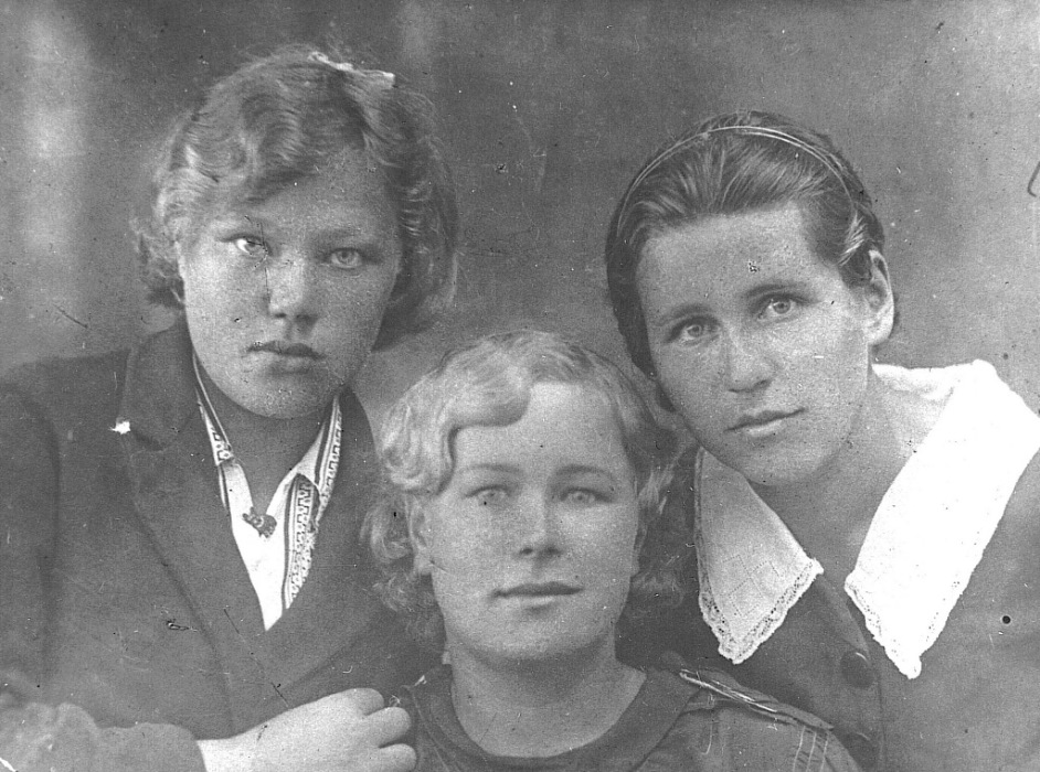 На фото с подругами Надей Тарасовой (Капишевой) и Ниной Мелентьевой - взгляд задумчивый, даже мечтательный. Марийке здесь всего шестнадцать лет, она перешла в девятый класс, и старшие подруги (Надя и Нина уже работали) пригласили её во время летних каникул на прогулку в Петрозаводск, где и был сделан этот снимок.