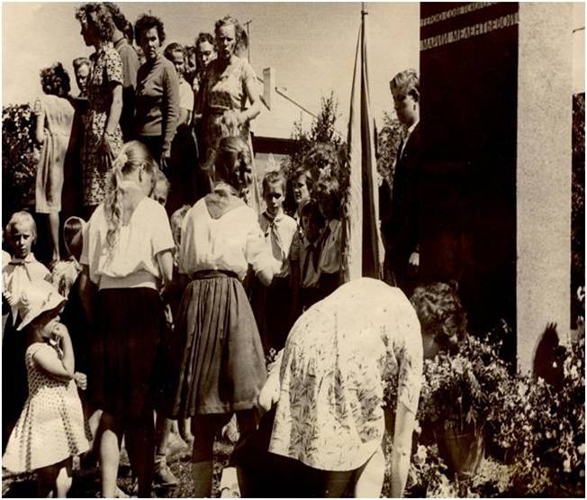 28 июня 1964 был солнечный день, по случаю открытия памятника Марии Владимировны Мелентьевой и Дня молодежи в Пряже состоялся большой митинг. Вместо сцены у нас была машина-полуторка с откидными бортами, на которой после открытия памятника выступали сестры Марийки – Валентина Владимировна и Александра Владимировна, а потом состоялся большой концерт».
