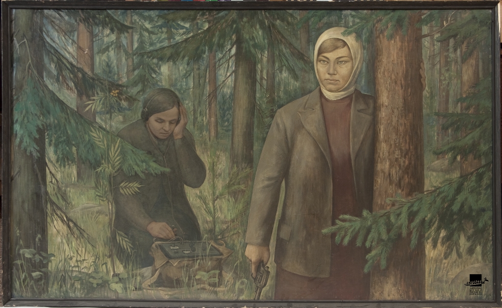 Его картина «На задании (М. Мелентьева и А. Лисицына)» написана в 1976 году. Размер картины 100х150 см. Техника исполнения – темпера. Долгие годы картина находилась в Доме-музее М. Мелентьевой. Во время проведения экскурсий в музее экскурсоводы всегда останавливались у картины, и ребята очень зримо могли представить, каким трудным и опасным было задание у разведчиц.